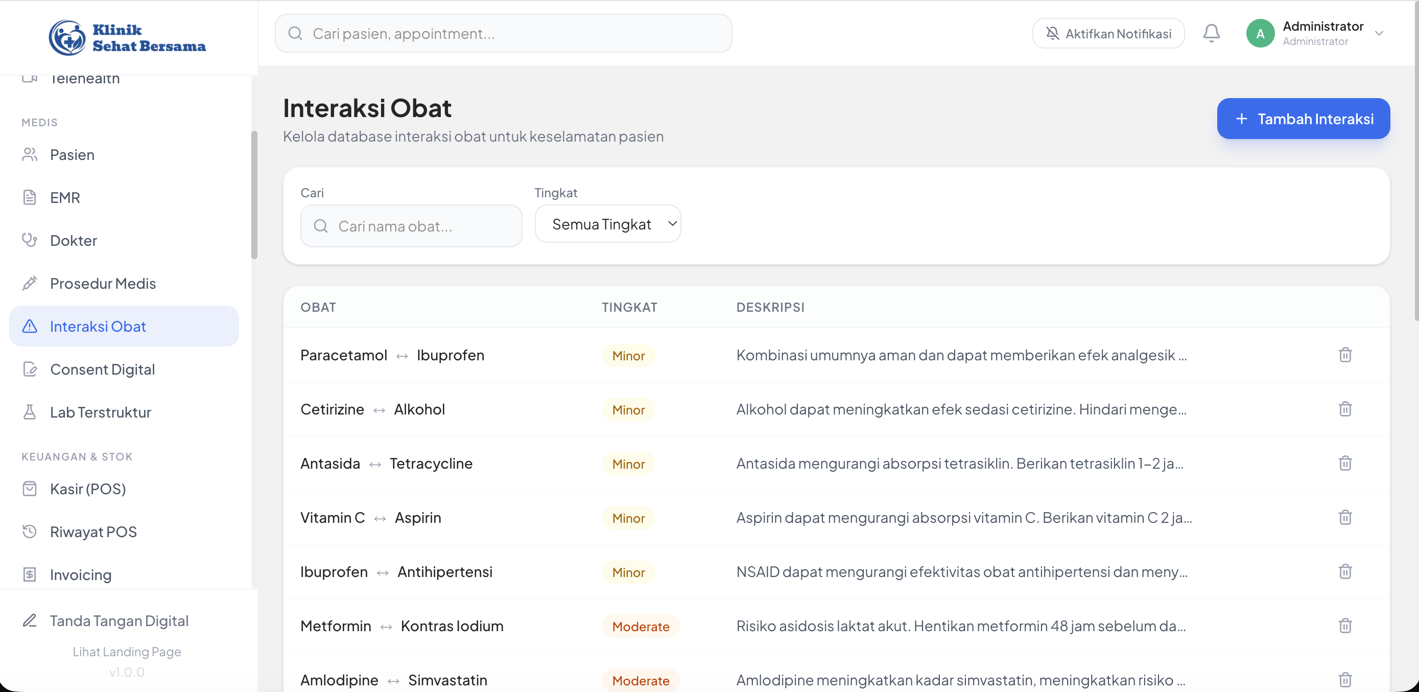 - Interaksi Obat: Informasi risiko kombinasi obat