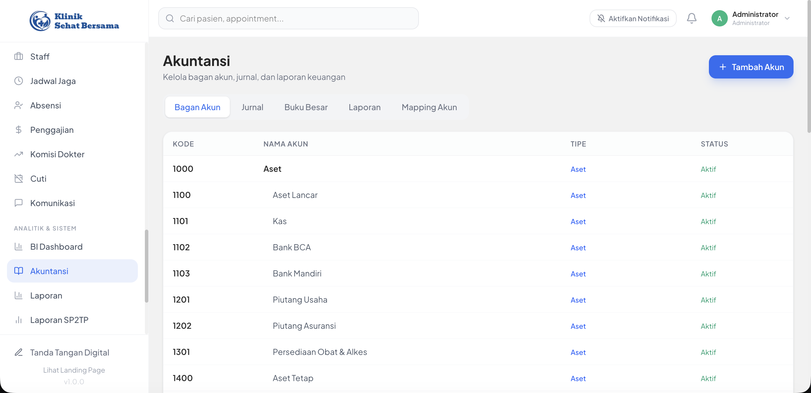 - Pengaturan Sistem: Konfigurasi operasional klinik